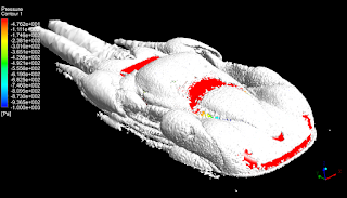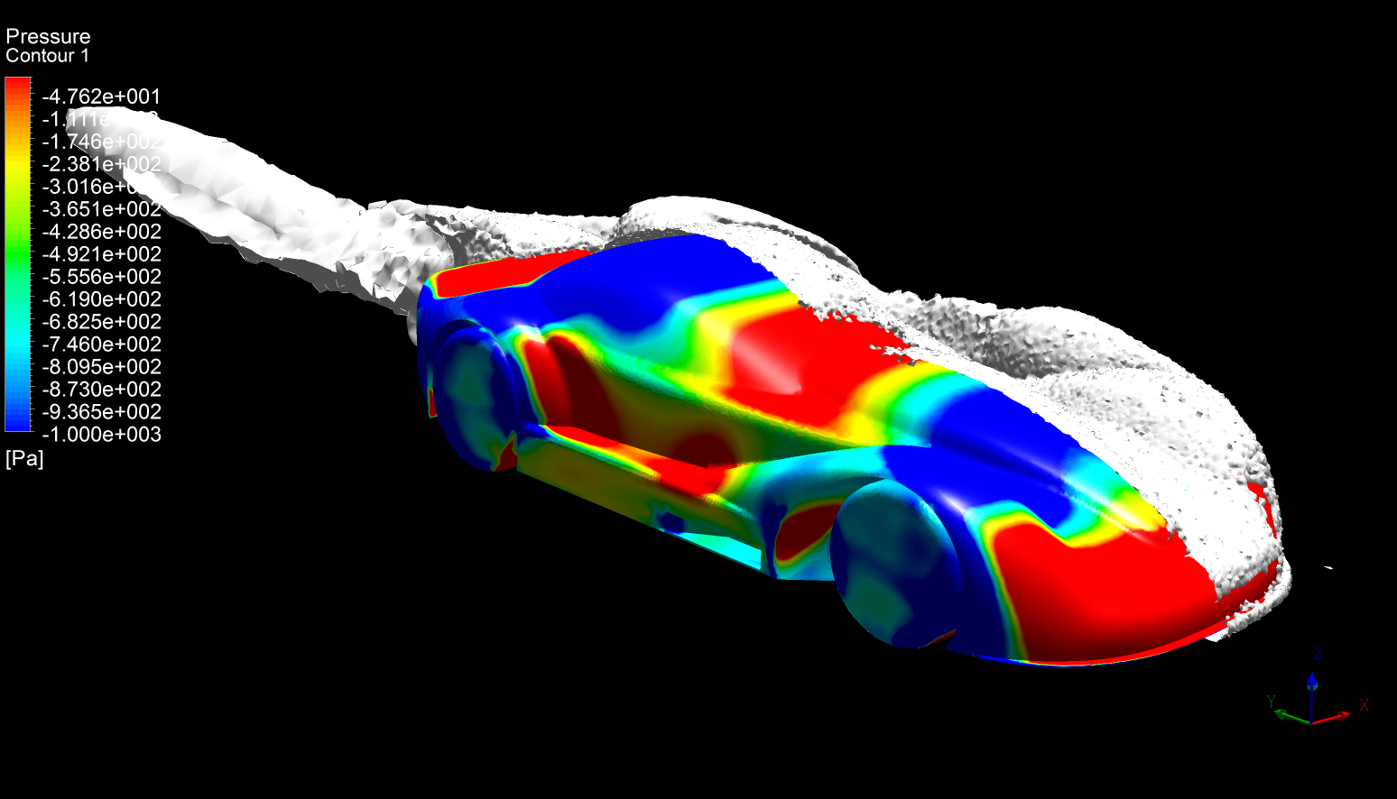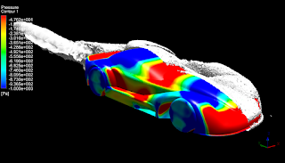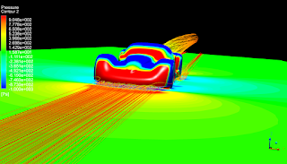 CFD model is was a simplified geometry of late 2004 model of P04 which have a relatively low nose and more realistic engine hood. 150 iterations run in Ansys CFD as a steady state mode. to avoid longer calculation time half model is used so results are based on the half model which need to be multiplied with 2.