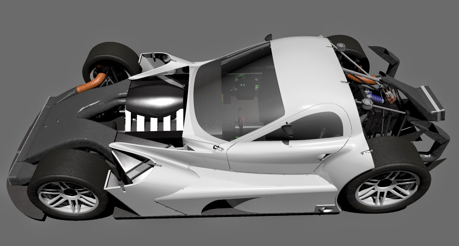 1. configuration: Side Mounted Radiators; As I have mention car was very much inspired from Panoz GTR-1 for its layout so I made a version with side mounted radiators, where radiators were mounted inside the side pods behind the front wheel. two ducts were feeding those radiators and exhausting from side. Front splitter opening were supplying cool air to the engine bay exhausting partially from forward of wind shield and side pod openings to the rear wheel that's why rear wheel arches are kind of oversized. There also was an opening that supplies air to the radiators front the front splitter opening. I don't know how functional it is but I will be testing it when I have an access to an CFD program.